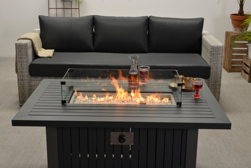 Met de Albufeira sfeerhaard heeft u geen gasslang en gasfles in het zicht. De gasfles kunt u onder de tafel plaatsen. De gas vuurtafel is gemakkelijk te ontsteken door middel van een elektrische ontsteking. De hoogte van de vlam is zelf in te stellen met een handige draaiknop. De ontsteking en draaiknop bevinden zich aan de zijkant van de lounge vuurtafel. De gas vuurhaard heeft een breed tafelblad waardoor je nog ruimte hebt voor je hapje en drankje. Daarnaast heeft de gastafel een prettige hoogte van 61 cm en is daarmee geschikt bij vele loungesets.