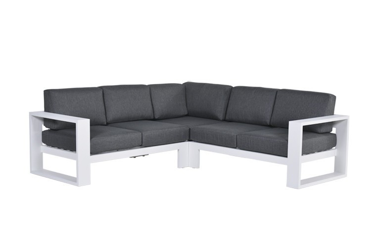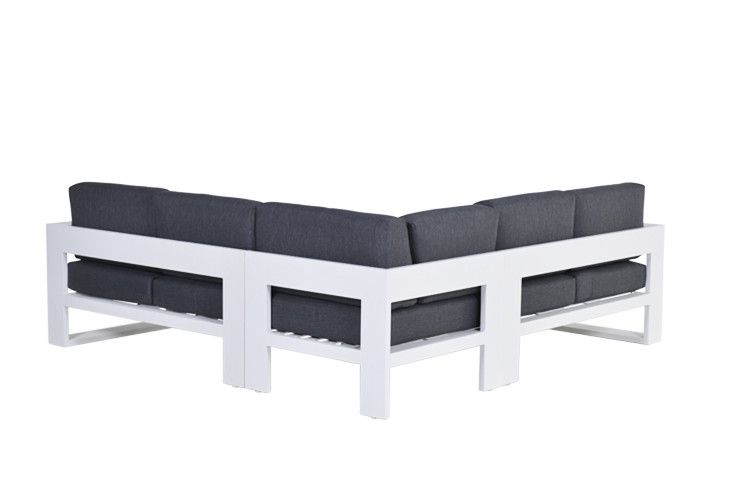 Met de Cube lounge hoekset haalt u een fantastische aluminium loungeset in huis. Deze hoekbank bestaat uit drie bankdelen en wordt geleverd inclusief kussens. Aluminium loungesets worden steeds populairder en dat is niet zonder reden. Het is onderhoudsvriendelijk en zeer duurzaam. De Cube serie is een robuuste lounge serie welke echte blikvanger in uw tuin zal zijn.