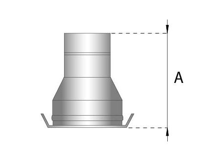 Dubbelwandig geïsoleerd rookkanaal, verloopstuk dubbelwandig – enkelwandig, diameter Ø 150mm. Voor bevestiging van dubbelwandig kanaal op enkelwandig rookkanaal.