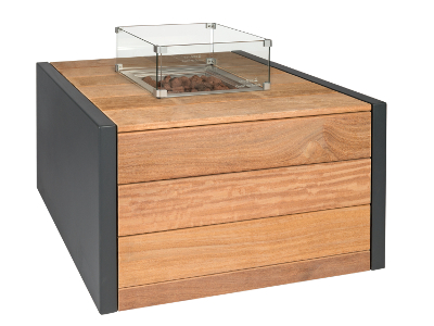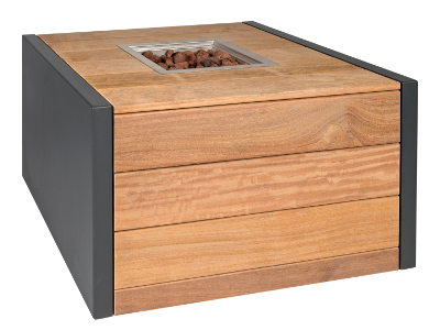 De vuurtafel Lake heeft een houten met een aluminium frame en valt daarom op.