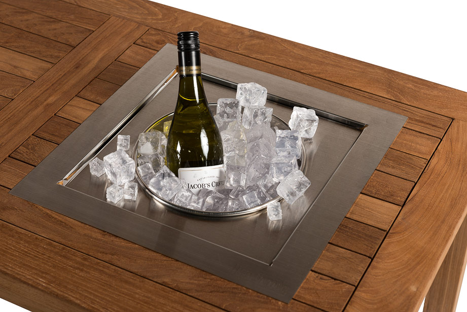 Deze inbouw wijnkoeler is geschikt om te plaatsen in een bestaande tuintafel. Het enige wat u hiervoor hoeft te doen is een gat van 31 x 31cm met de bijgeleverde mal uit de tafel te zagen en de inbouwkoeler erin te laten zakken