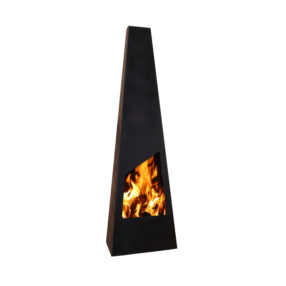 De Nevados is een stalen tuinhaard met een opvallend design. Dit driehoekige model heeft aan de voorzijde zicht op het vuur.